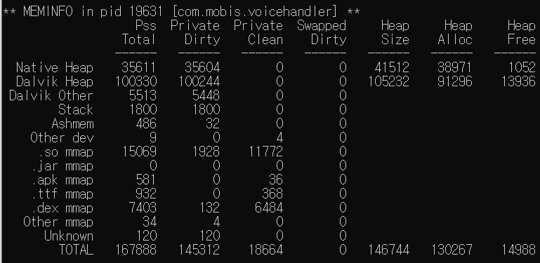 total의 사용량은 변동이 없으나 Heap Free의 영역이 늘었다는거에 대해 의미를 두어야 할 듯 함.